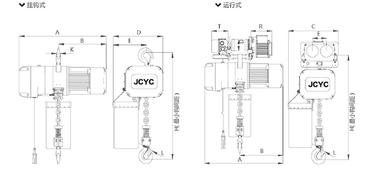 掛鉤式環(huán)鏈電動葫蘆(0.25T-5T)尺寸參數(shù)